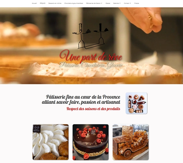 Création du site internet pour Une Part de Rêve, pâtisserie artisanale à Malijai. Conception graphique sur mesure avec mise en valeur des créations et de l’univers de la marque. Présentation des produits, informations boutique et actualités. Intégration d’un formulaire de contact. Site responsive adapté mobile et tablette. Optimisation du référencement naturel. Mise en conformité RGPD et outils de communication digitale.